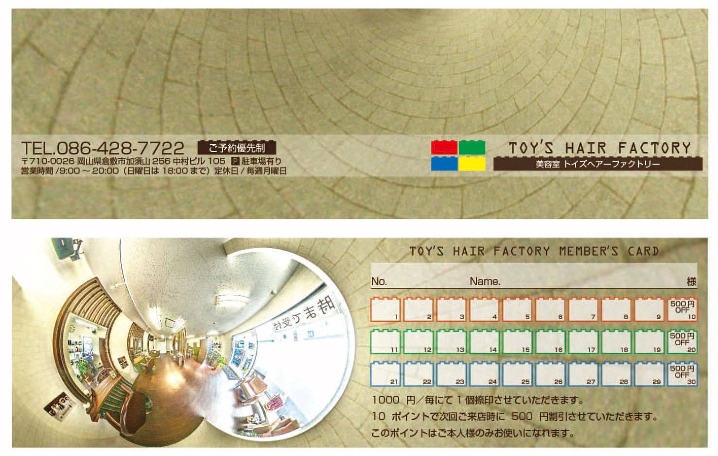 トイズヘアーファクトリー 様のポイントカード・360°パノラマVRを作成いたしました。